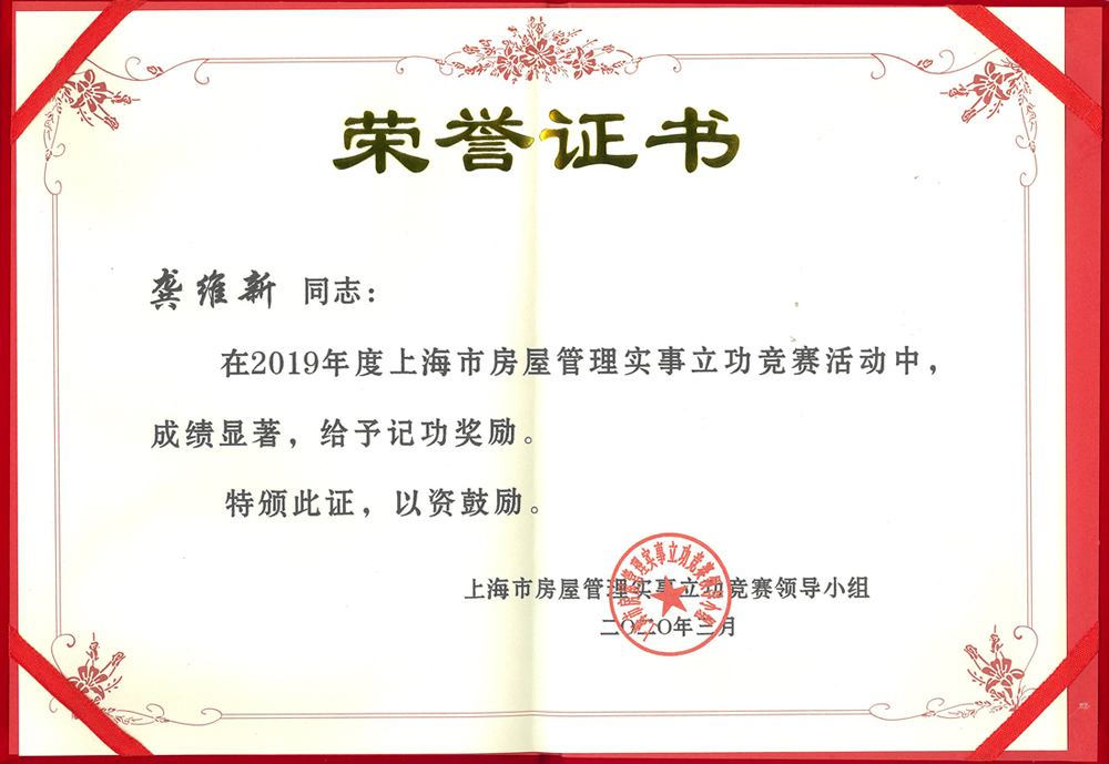 公司第二項目部獲2019年度上海市房屋管理事實立功競賽城市更新分賽區(qū)優(yōu)秀團隊稱號